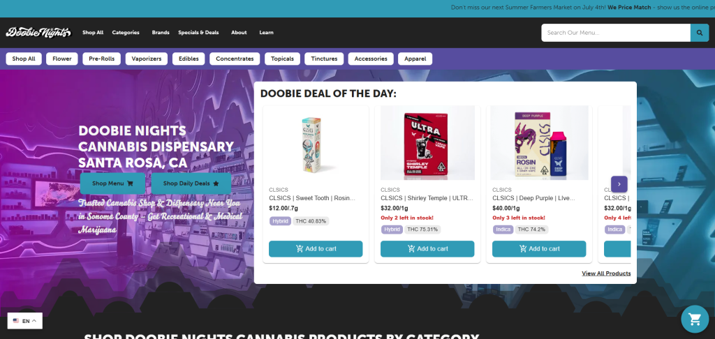 Doobie Nights places a major emphasis on supporting small-batch, Northern California cannabis brands, keeping the store’s ethos tied tightly to its local roots. With a wide selection of cannabis flowers, edibles, tinctures, and concentrates, customers can explore California’s best while enjoying one of the most unique retail experiences in the state.