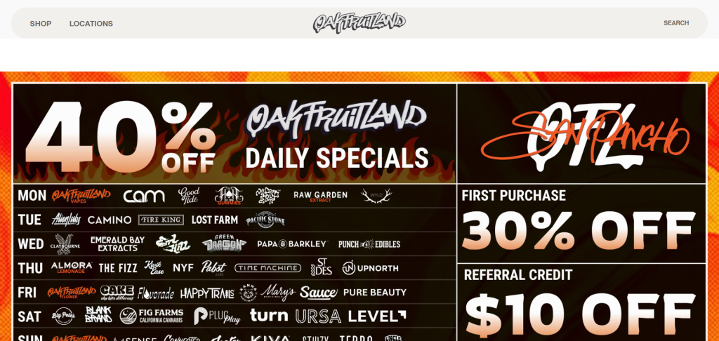 With Apexer granted equity license access and Oakfruitland supplying vertically integrated cannabis flowers, San Pancho is able to offer premium products at price points that undercut nearly every competitor in the city. About 35% of the store’s inventory is from Oakfruitland, complemented by local staples like Sunset Connect and the Fulton Fiverr series. Daily promotions—such as 40% off rotating brands—are subsidized through vendor partnerships, making the pricing model sustainable and scalable.